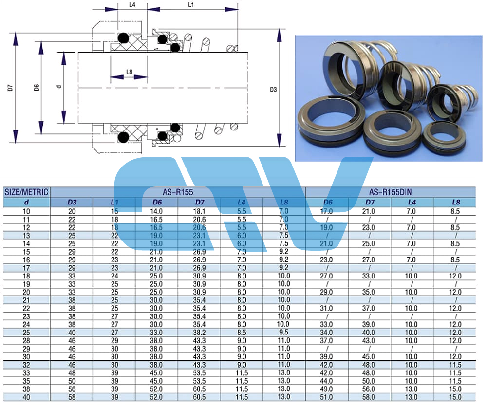 Phớt máy bơm type 155 (155A) hay còn gọi là phớt nhọn có tác dụng làm kín trục bơm, sử dụng cho các loại bơm ly tâm trục ngang như:
